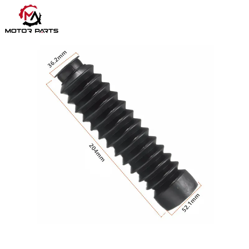 Motociklo priekinio amortizatoriaus dulkių gaubtas pagamintas iš itin elastingų ir minkštų medžiagų, kurios gali efektyviai sušvelninti subtilias vibracijas, kurias sukelia amortizatoriaus išsiplėtimas ir susitraukimas, tuo pačiu ženkliai sumažinant vibracijos keliamą triukšmą ir pagerinant važiavimo komfortą; Kai kurie gaminiai yra specialiai sukurti su pastorintomis konstrukcijomis, kurios, palyginti su įprastais modeliais, padidina svorį 30%. Jie gali stipriai atsispirti išoriniams poveikiams, tokiems kaip nedideli akmenų smūgiai ir medžio šakų įbrėžimai, todėl visapusiškai apsaugo amortizatorius.