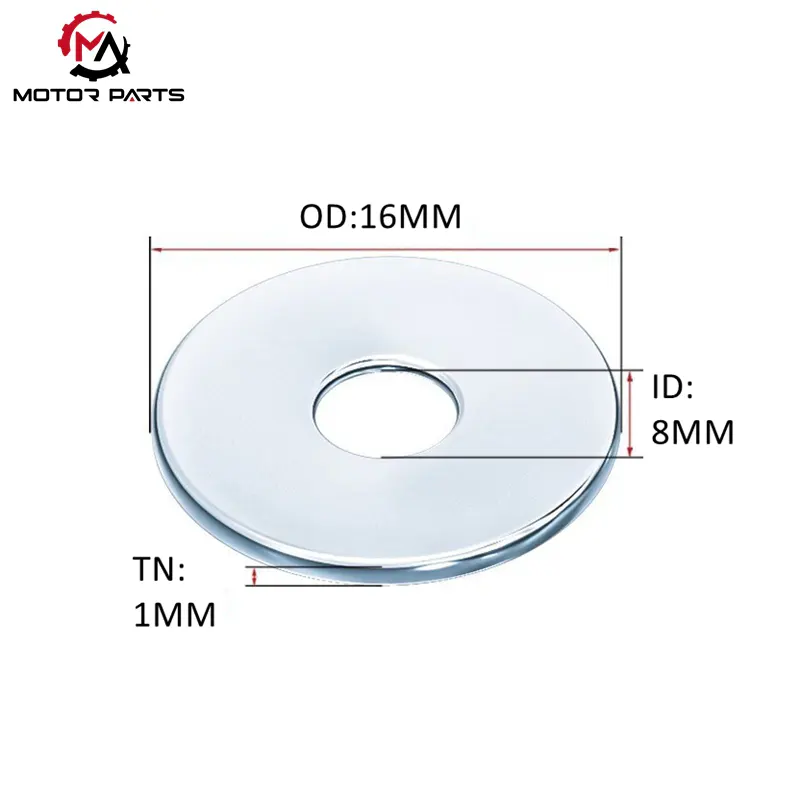 Ši aukštos kokybės M8 motociklo cinkuota veržlių poveržlė yra įprasta lengvų motociklų dalių tvirtinimo specifikacija. Faktiškai gaminant ir montuojant: