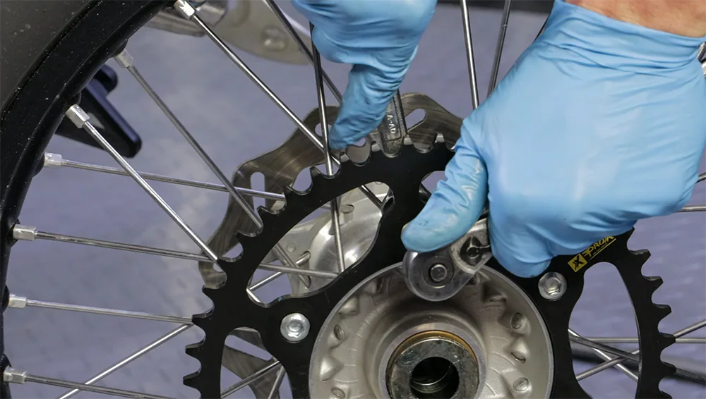 Norėdami pamatyti, ar kalbėjimo įtampa yra teisinga, brūkštelėkite kitus rato stipinus ir klausykite jų skleidžiamo garso. Tada brūkštelėkite į kalbą, kurią taisote. Tos pačios įtampos stipinai skleis panašius garsus. Verkite veržlę, kol garsas bus toks pat kaip ir kitų stipinų, tai reiškia, kad įtampa yra teisinga.